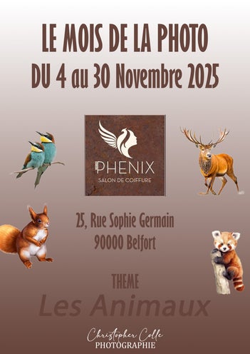 Bienvenue sur la page d'exposition de Christopher Colle Photographie. Découvrez ici mes prochaines expositions et événements photo à Belfort et aux environs. De superbes portraits, des photographies d'événements captivantes et des photos animalières inoubliables vous attendent. Restez informé et venez admirer notre travail en personne.